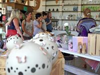 Die drei Lehrerinnen im Bereich Keramik haben bei ihrem Praktikum bei der täglichen Produktion geholfen – Schmunzelsteine und Eulen aus Ton; sogar eine Schale ist dabei entstanden. Zur Erinnerung gab es einen kleinen fertigen Schmunzelstein-Schlüsselanhänger.